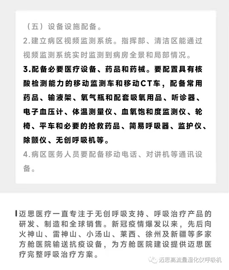邁思醫(yī)療完整呼吸治療方案助力方艙醫(yī)院建設(shè)